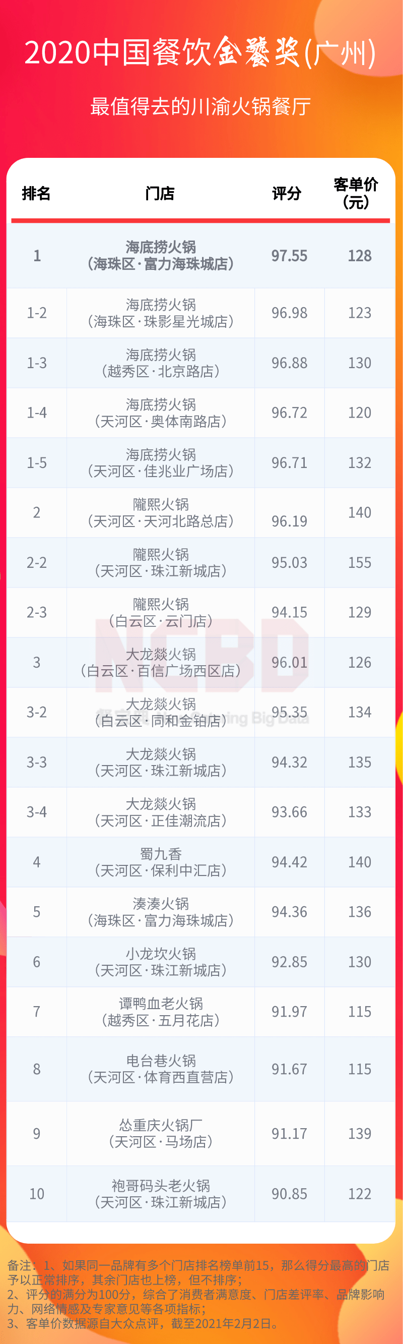 10、榜单中的最终数据以该门店正在2020年12月份数据为准实行估计,并不代表该门店以后的情景,NCBD(餐宝典)过错该门店以后的发扬控造(如破产、转型、整改等),榜单仅供参考,不含任何企业的增添。