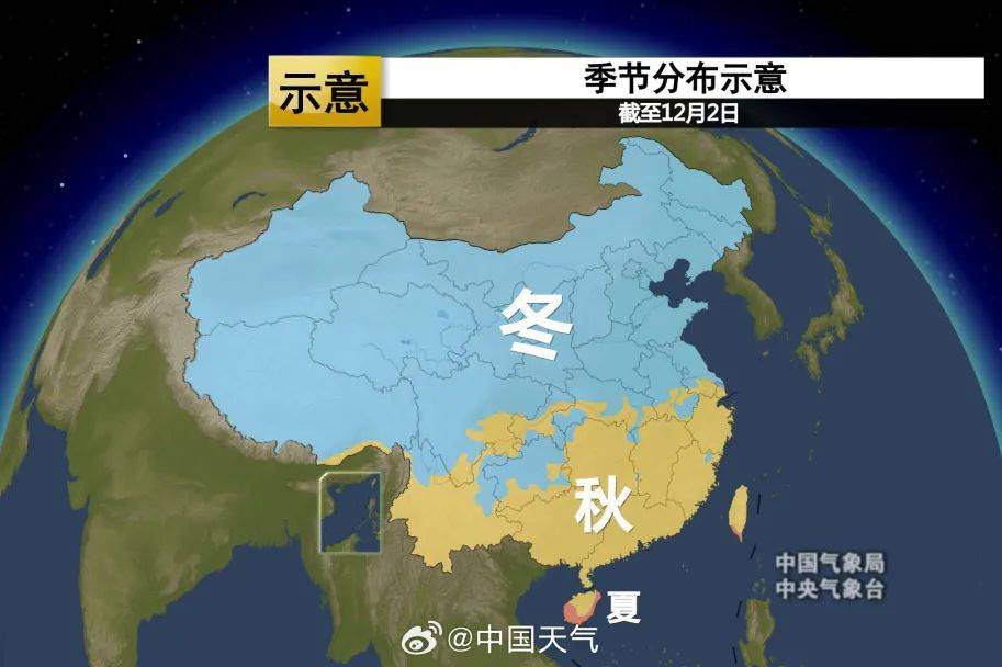 大雪骨气开启,天色愈寒,时雪转甚。截止12月2日,此时时令国畿上,冬季仍旧吞没我国国畿大局限的面积,牢牢锁定霸主的位子。正在一股股寒气氛的帮推下,冬季还将正在大雪时间翻越南岭,一连挤占秋季所剩不多的地皮。而此时的夏令,“蜗居”正在海南岛和台湾岛的最南端,刚毅地演绎了我国的地区广宽。福州也正在一股又一股寒气氛吹袭下,秋意渐深。